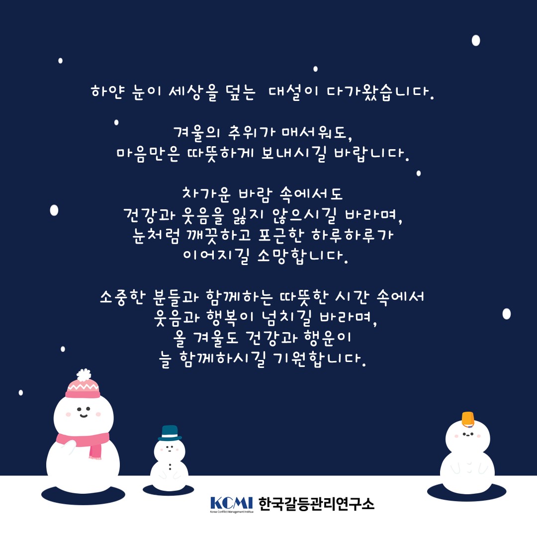 #한국갈등관리연구소 #갈등관리상담사 #협상전문가 #대설 #첫눈 #자격과정 #갈등자격증 #갈등교육 #갈등상담 #조정 #중재 #협상기술 #소통전문가 #전문상담 #비대면교육 #갈등 #갈등자격 #협상 #상담 #자격증 #평생자격증