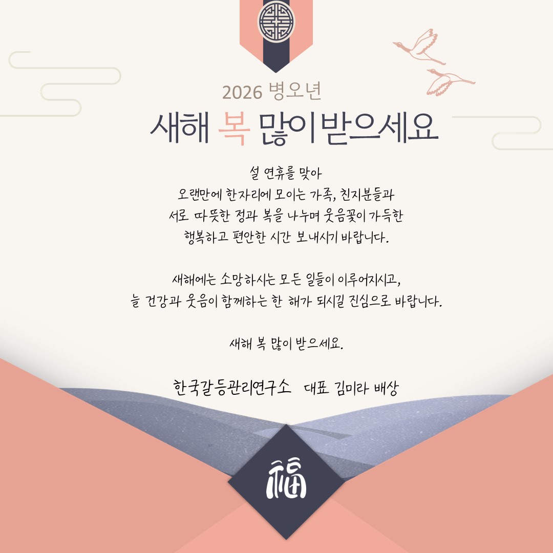 #한국갈등관리연구소 #갈등관리상담사 #협상전문가 #병오년 #새해복많이받으세요 #설날 #명절 #자격과정 #갈등자격증 #갈등교육 #갈등상담 #조정 #중재 #협상기술 #소통전문가 #전문상담 #비대면교육 #갈등 #갈등자격 #협상 #상담 #자격증 #평생자격증