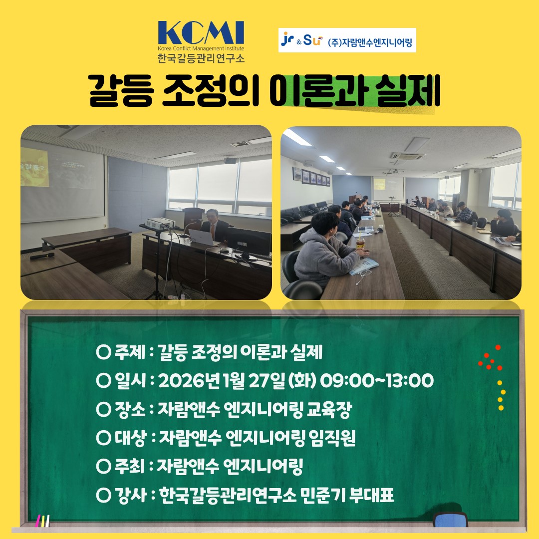 #2026 #한국갈등관리연구소 #갈등자격증 #갈등관리상담사 #협상전문가 #자격과정 #교육생 #자람앤수 #자람앤수엔지니어링 #2급과정 #갈등 #조정 #중재 #기술 #협상 #소통 #갈등상담 #갈등강의 #갈등교육 #상담 #자격증 #갈등자격 #갈등관리