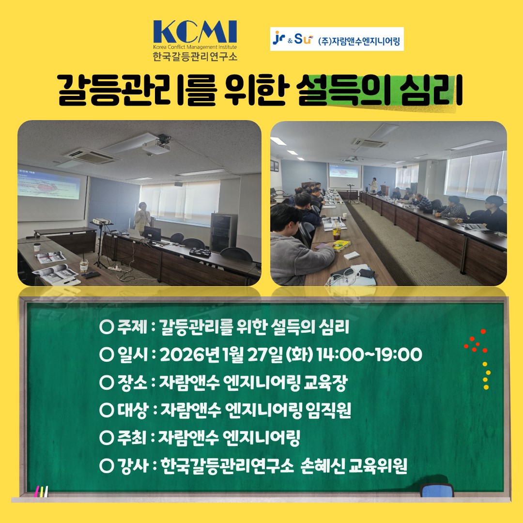 #2026 #한국갈등관리연구소 #갈등자격증 #갈등관리상담사 #협상전문가 #자격과정 #교육생 #자람앤수 #자람앤수엔지니어링 #2급과정 #갈등 #조정 #중재 #기술 #협상 #소통 #갈등상담 #갈등강의 #갈등교육 #상담 #자격증 #갈등자격 #갈등관리