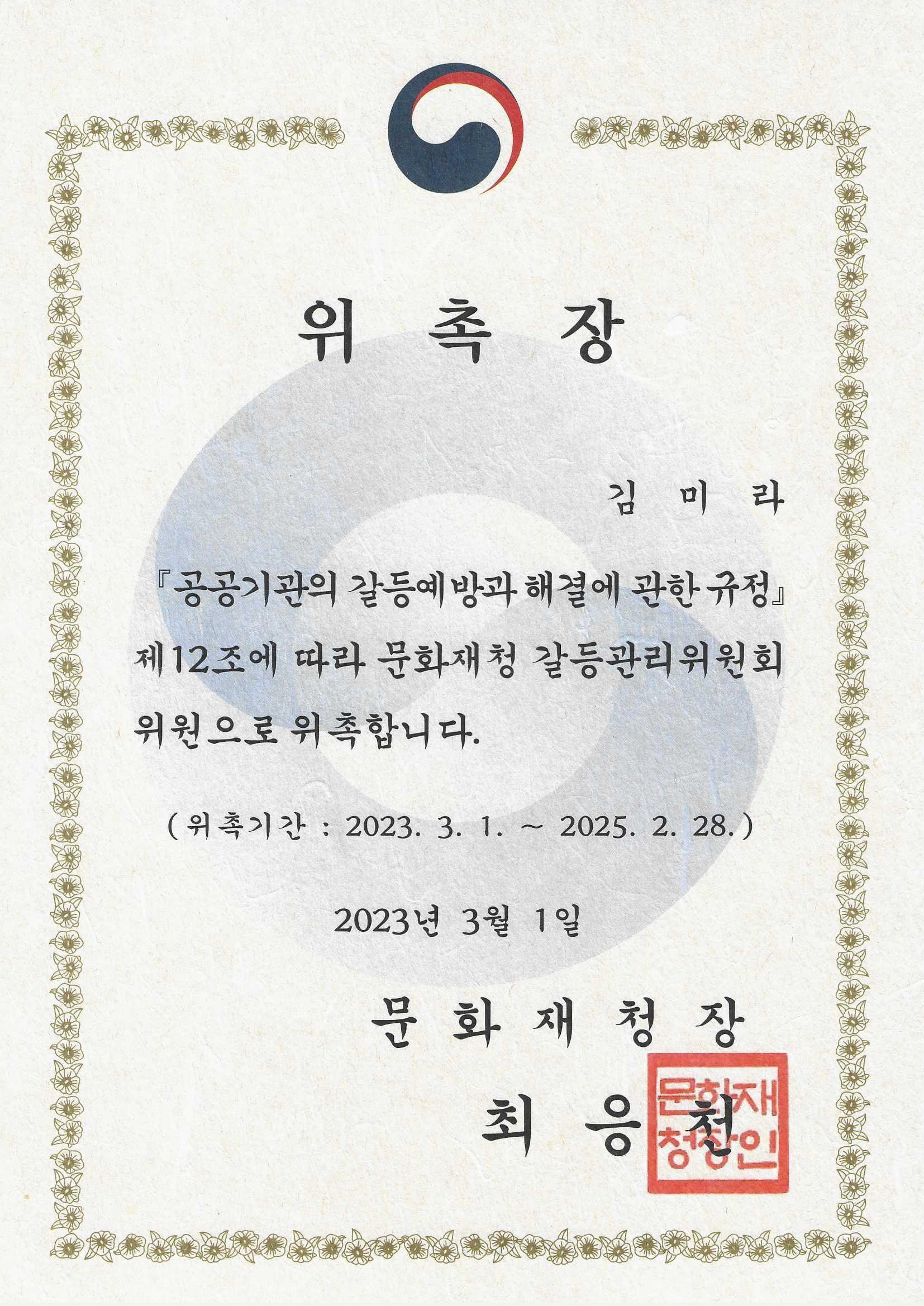 홈연구소 소개주요성과 주요성과 【위 촉】"문화재청 갈등관리위원회 위원" 문화재청 작성자 관리자 작성일 2023-03-21 01:39 조회 132 좋아요 0 싫어요 0 인쇄 « 【위 촉】"갈등관리심의위원회 위원" 인천광역시부평구청 【위 촉】"제주특별자치도 사회협약위원회 위원" 제주특별자치도 » 목록보기 답글쓰기 Powered by KBoard