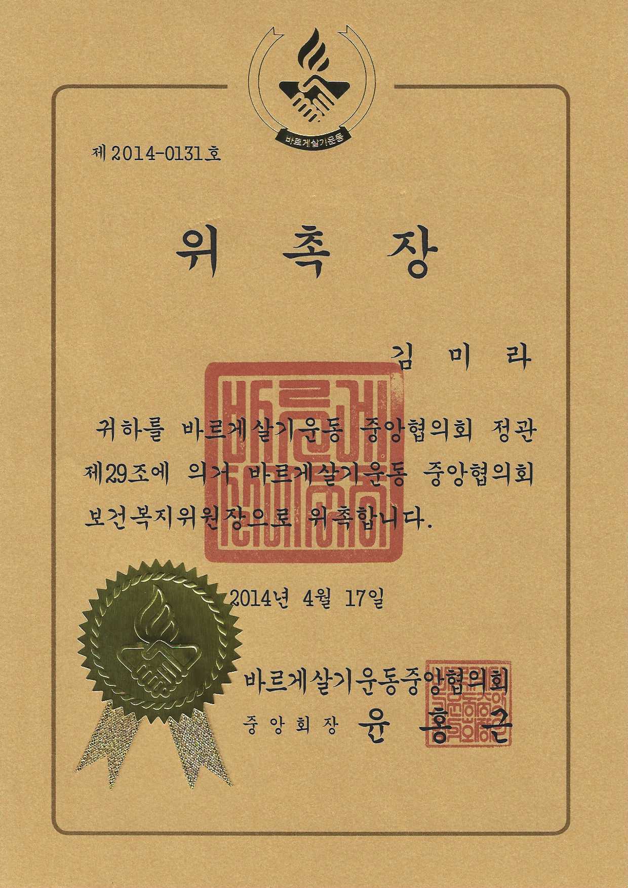 홈연구소 소개주요성과 주요성과 【위 촉】"바르게살기운동 중앙협의회 보건복지위원장" 바르게살기운동중앙협의회 작성자 연구소 상담실장 작성일 2022-01-26 02:25 조회 77 좋아요 0 싫어요 0 인쇄 « 【위 촉】"노인일자리사업 참여자 소양교육 강사" 한국노인인력개발원 【표 창】"김미라 박사님" 안전행정부 » 목록보기 답글쓰기 Powered by KBoard