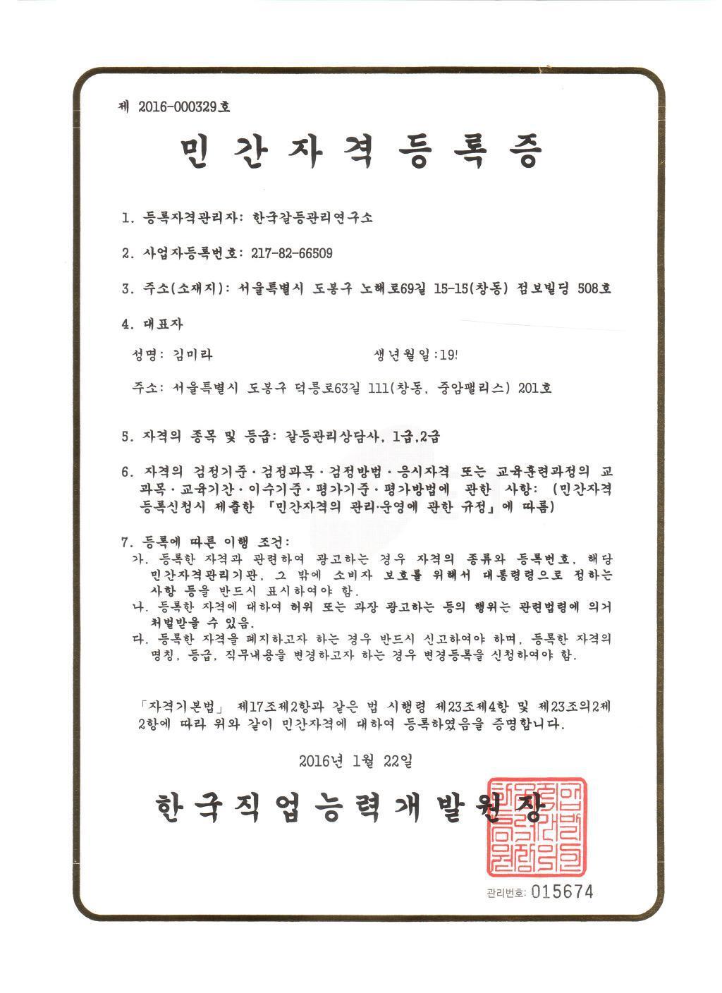 홈연구소 소개주요성과 주요성과 【자격등록증】"갈등관리상담사 1급, 2급" 한국직업능력개발원 작성자 연구소 상담실장 작성일 2022-01-26 02:30 조회 79 좋아요 0 싫어요 0 인쇄 « 【위 촉】"주거재생지원센터 갈등조정관" 서울특별시 【위 촉】"선도심사위원회 전문위원" 도봉경찰서 » 목록보기 답글쓰기 Powered by KBoard