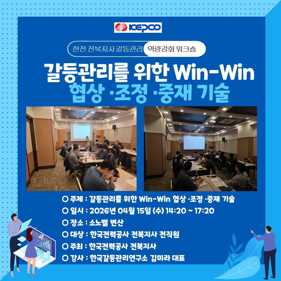 #2026 #한국갈등관리연구소 #갈등관리상담사 #협상전문가 #자격과정 #갈등자격증 #갈등교육 #갈등상담 #조정 #중재 #협상기술 #소통전문가 #전문상담 #비대면교육 #갈등 #갈등자격 #협상 #상담 #자격증 #평생자격증 #한국전력공사 #전북지사